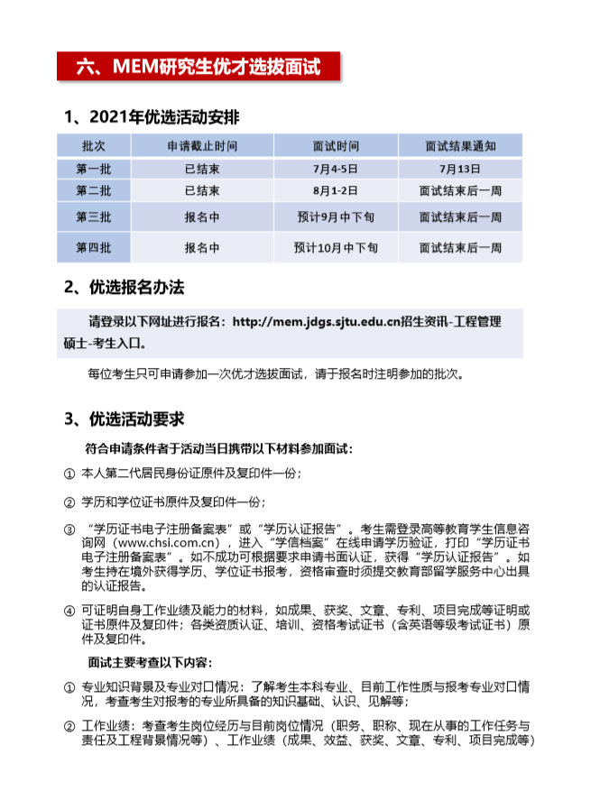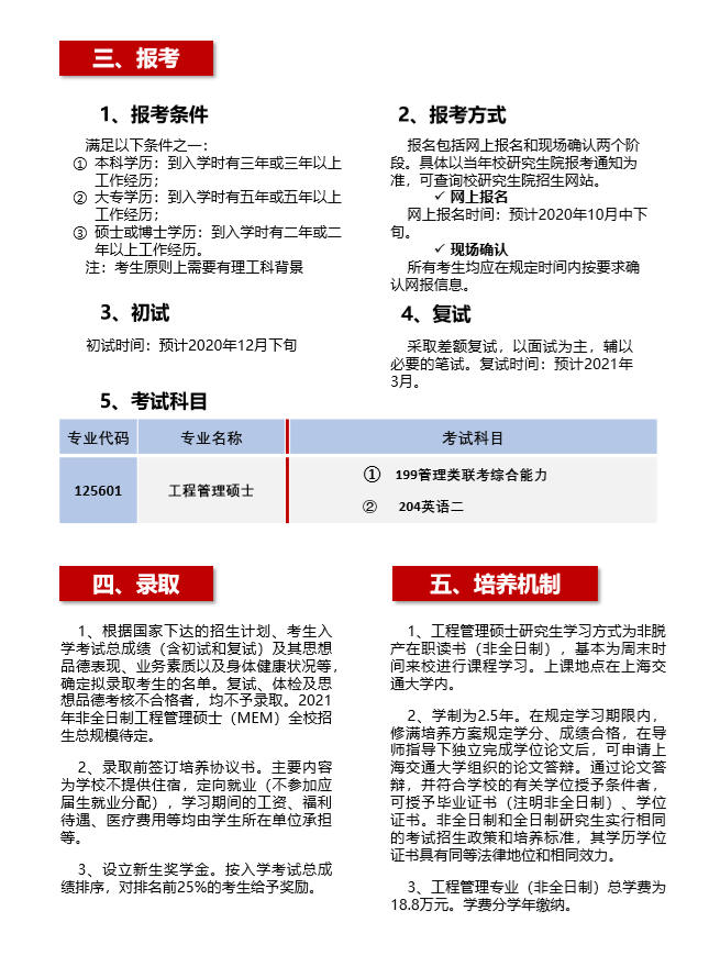 原标题:招生与培养简介|机械动力学院2021年工程管理硕士(MEM)招生与培养简介
