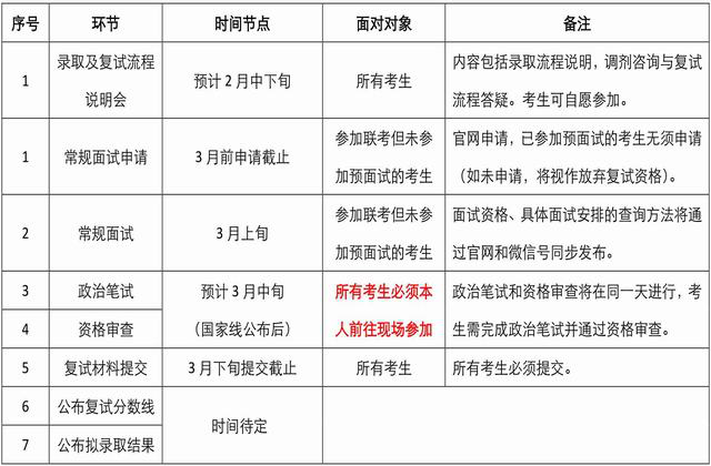 2)未参加预面试且参加过全国联考的考生均可申请常规面试,目前常规面试申请通道已开放(申请网址:),我院进行综合评估后确定常规面试资格。具体申请信息请密切留意官网和本公众号通知;