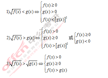 解无理不等式的关键在于去根号,把无理不等式转化成有理不等式,其化简原则如下:
