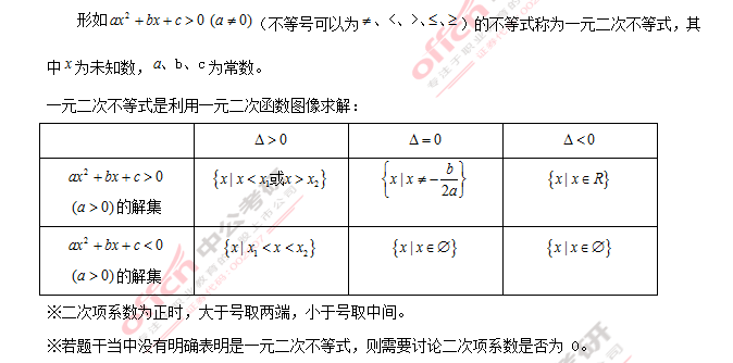 一、 一元二次不等式