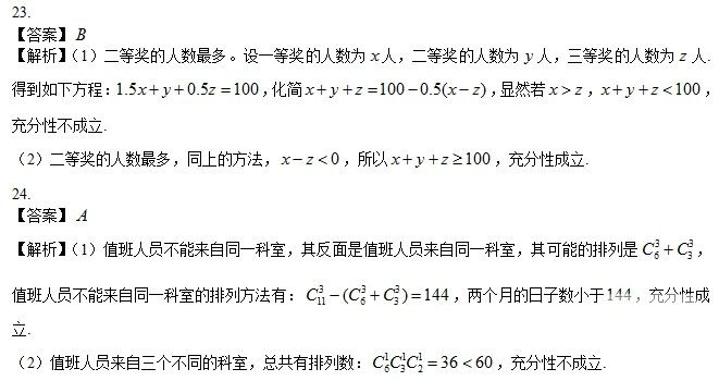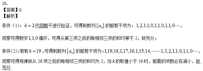 二、充分性条件判断:第16~25小题小题,每小题3分,共30分。要求判断每题给出的条件(1)和条件(2)能否充分支持题干所陈述的结论。A、B、C、D、E五个选项为判断结果,请选择一项符合试题要求的判断,在答题卡上将所选项的字母涂黑。