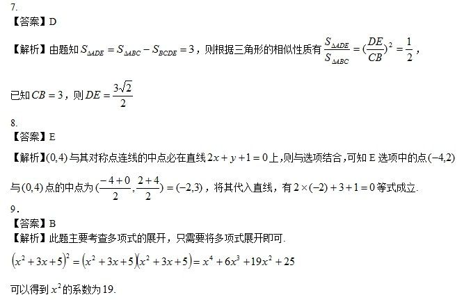 35、【解析】解析:正确答案是D。本题为混合关系推理,如果一月、二月、三月这三个月中任一一个月有三人同时当选那就不可能满足条件(4),所以选项ABC排除;选项E直接与条件(4)冲突,排除,所以剩下的D为正确选项,即,1到4月有一人当选,3到6月有一人当选,4到7月有一人当选,5到8月有一人当选,这样,456这三个月当中每一个月都有三个人同时当选。