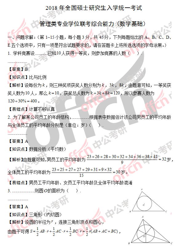 中公管理人考后为大家整理发布2018年考研管综答案及试题解析汇总,中公管综研究院老师深度解析试题变化及难度,帮助考生做好考后估分(估分入口)、从容迎战后续复试调剂!