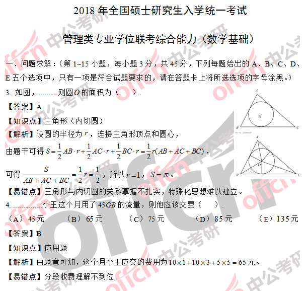 2018年考研管综初数试题答案及试题解析(第3/4题)