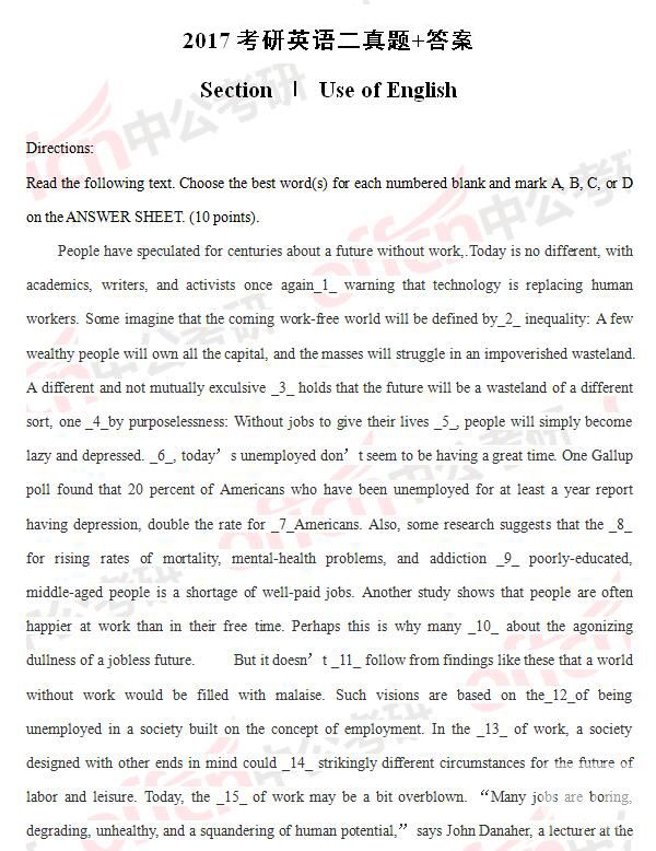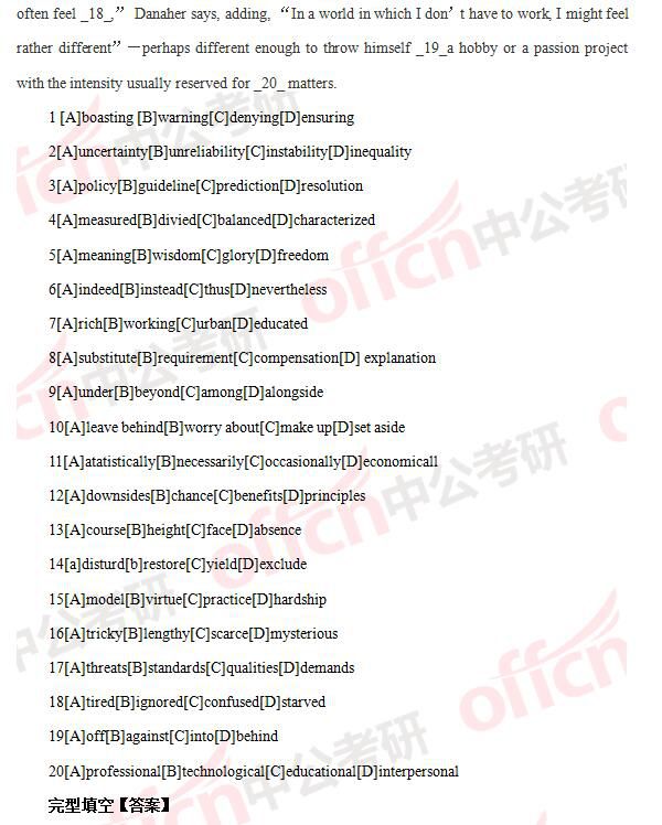 2020考研英语二完形填空试题及答案解析(中公考研版)