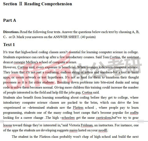 英语考试已经于26日下午17点正式结束,中公考研辅导老师第一时间为各位同学整理发布2016年考研英语二试题,具体内容如下,各位同学可以进行参考。