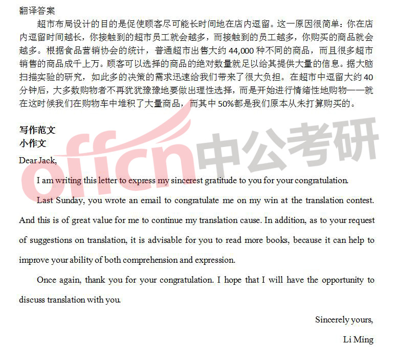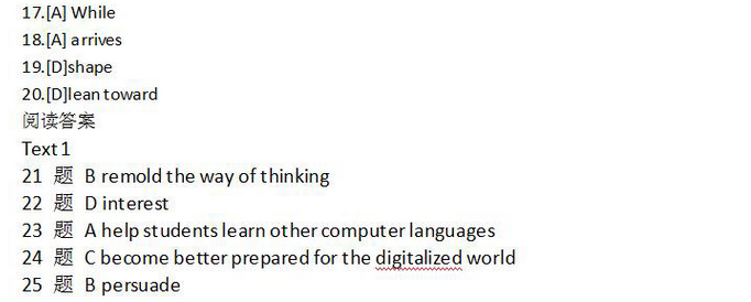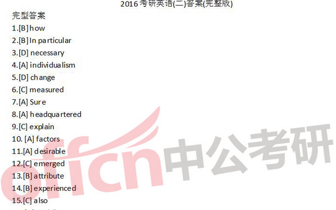 2016考研英语二试题答案