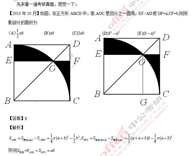 除此之外,你可能会发现,当做OG垂直于BC时,会有更加简便的做法,就是两个阴影部分可以合起来,就组合成一个矩形,运用矩形的面积公式就可以运算为ab。这是此类问题的简便方案。在面对该类题目的时候,我们还是希望大家前期可以掌握第一种方法,把基础知识打牢固,才能有一个有益于,更好的理解第二类做法。