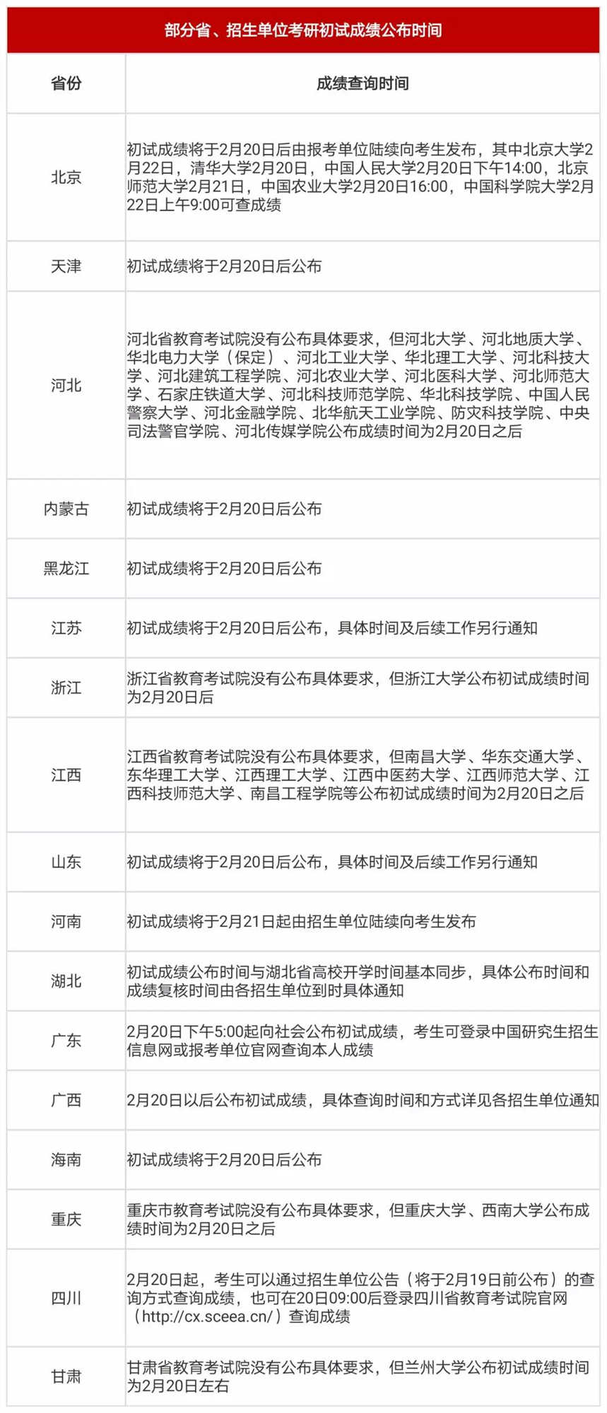 下面是小编给大家整理的部分省市院校的成绩公布时间汇总(截止到8号),如有变动以官网最新通知为主!由于院校比较多,没有汇总到的院校,小伙伴们可以去报考院校研究生院官网查询!
