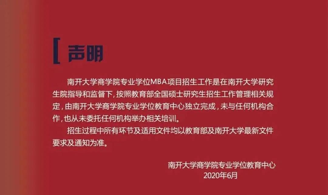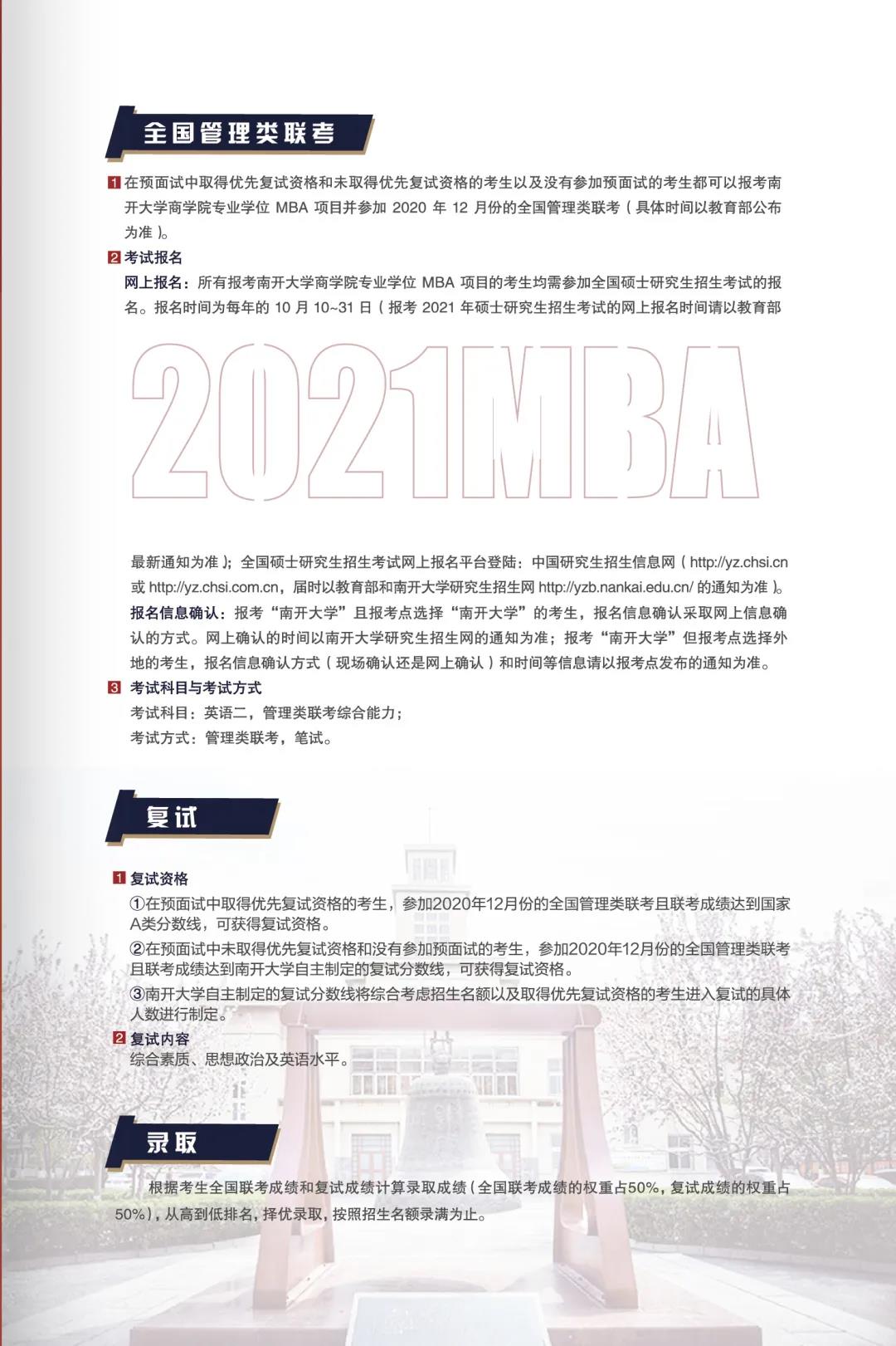 原标题:南开大学商学院专业学位MBA项目2021招生信息