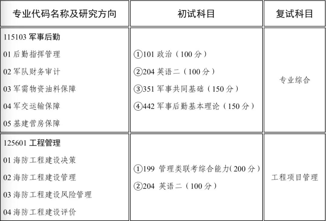 2020年计划招收军事硕士30名(非全日制15名),工程管理硕士10名(非全日制5名)。