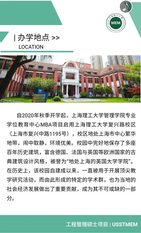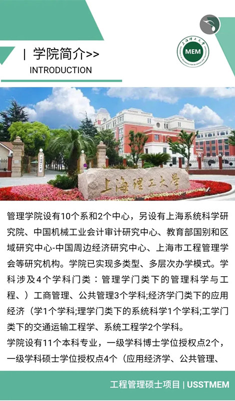 原标题:内含H5 | 2021上海理工大学工程管理硕士(MEM)招生简章