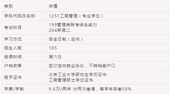 北京工业大学MBA项目致力于培养具有系统性思考能力、国际视野和创新精神、适应经济全球化的德、智、体全面发展的中高级管理人才。MBA主要研究方向:组织与战略管理、经营与创新管理、金融与财务管理。