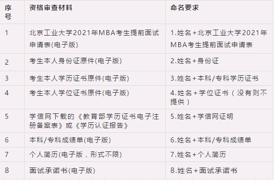 注:(1)《北京工业大学2021年MBA考生提前面试申请表》(见原文链接附件1,提取码:x33d)。