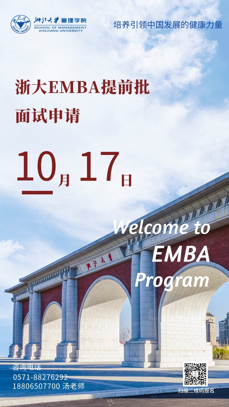 原标题:10月17日 | 浙大EMBA提前批面试持续申请中~