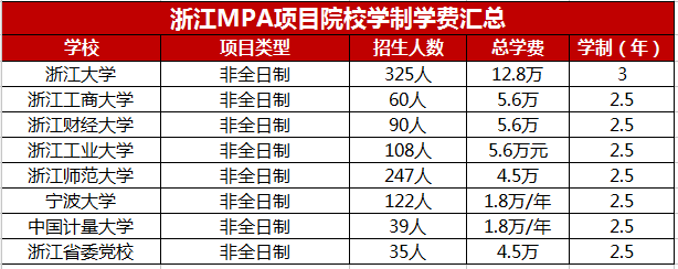 以上是中公小编为大家整理的“2021浙江MPA项目招生院校学费学制汇总”想要了解更多的关于MPA招生院校的学制学费,请点击→中公管理人(www.mbazl.com),还有更多的关于管硕联考课程等着大家哦~