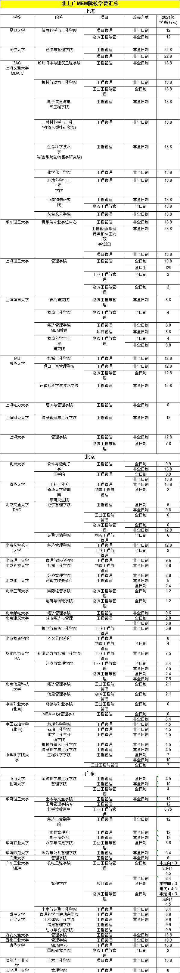 在此,为大家汇总了北上广地区院校的MEM学费情况,大家可在择校方面进行参考。(由于大部分院校2022学费未公布,因此汇总了2021年MEM学费)