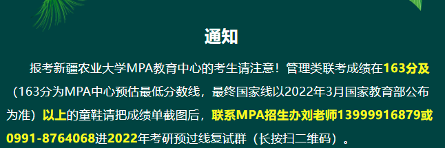 今年的考研国家线什么时候公布?不知道报考的院校复试能不能通过?心慌,考研复试没过能调剂吗?小编和您说:不用心慌。截止到目前,全国各省市考研成绩已经出来了,接下来还有最后一个重要环节——复试,尤其是初试分数线在压线的考上们,不要放松警惕,只有复试成功,整个考研流程才算完全结束呦!大家一定要坚持到最后,不打无准备的仗!中公管理人为大家整理了一篇“2022新疆农业大学MPA通知“内容,一起来看看吧!