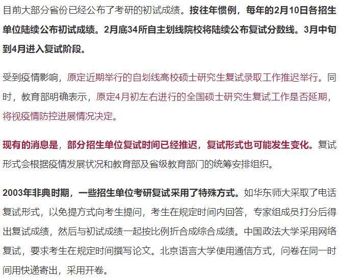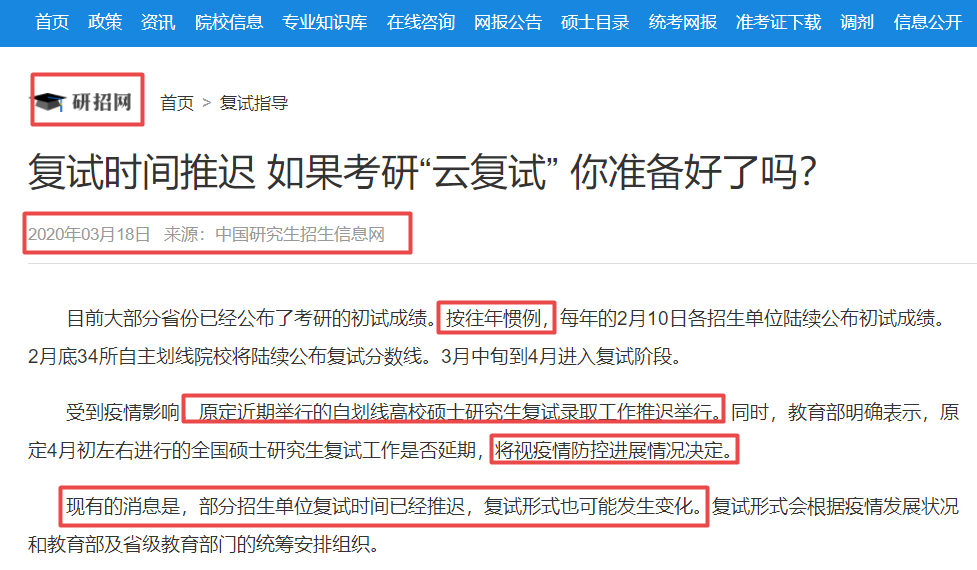 各位研友朋友圈可能有这样一则“云复试”大新闻,来自研招网的最新推送!你get到了什么信息?复试时间形式都没定,也说明随时有可能。