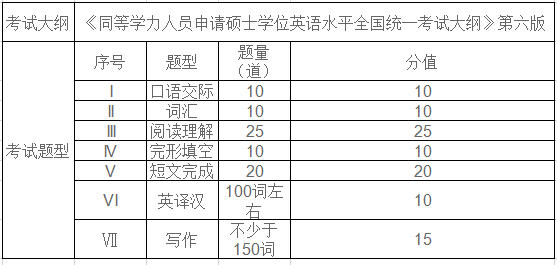 (注,下表整理的考试大纲和题型是根据2015年同等学力申硕考试大纲及题型总结,更新大纲消息请以中国学位与研究生教育信息网为准)。